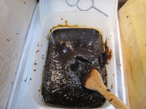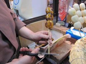 秘伝のクルミのたれを付けて食べます!